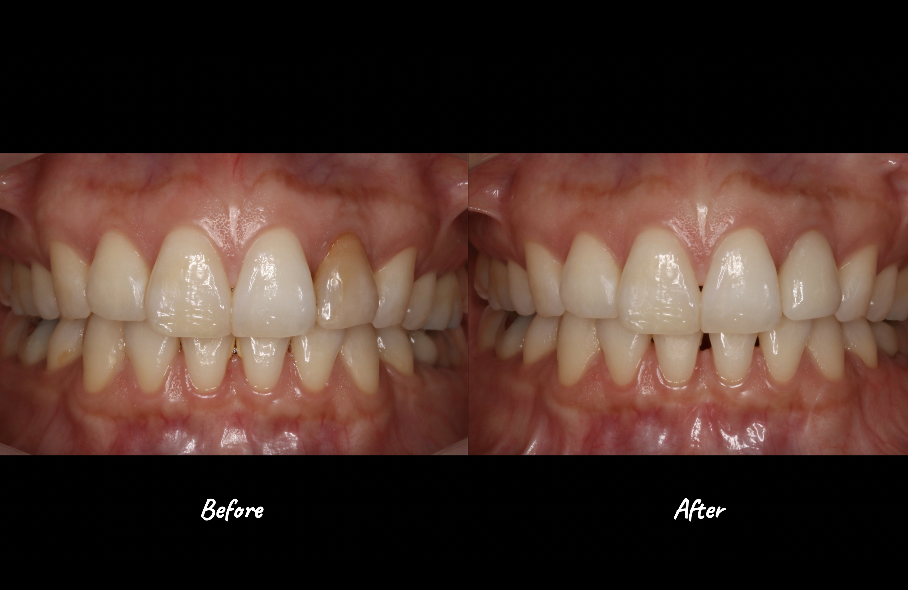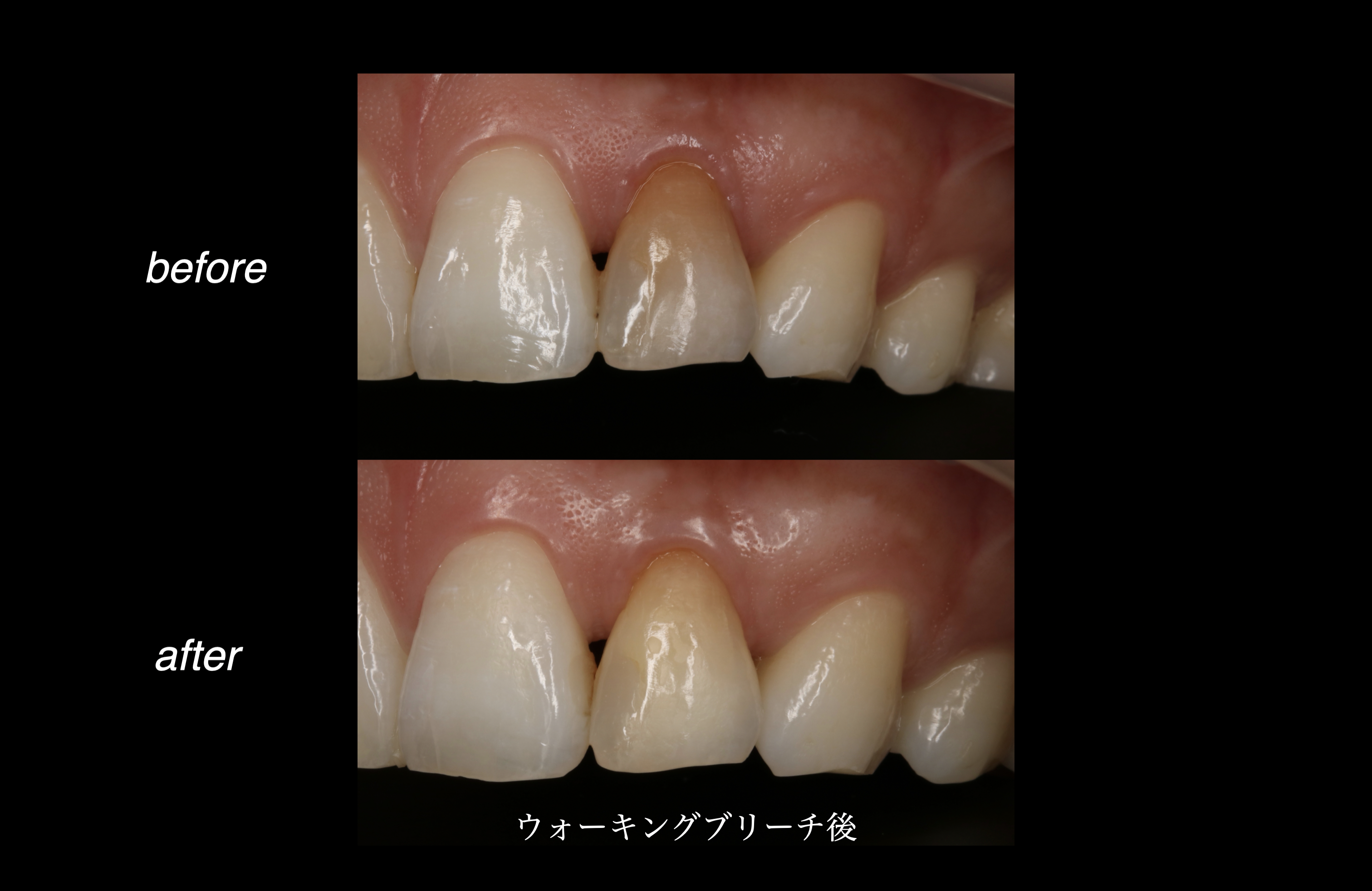 ①前歯のホワイトニング(※ウォーキングブリーチ)