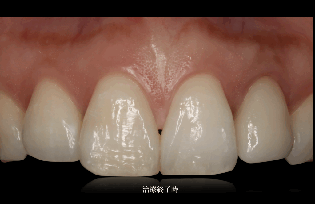 治療前の状態に比べて、治療した箇所がわからないような自然な仕上がりにすることができました。 患者様にも大変満足していただくことができました。 今後は、ご自宅での歯磨きなどのセルフケアや、就寝時にはセラミック破折予防のためナイトガードを装着していただき、定期的に当院でメインテナンスを行っていく予定です。