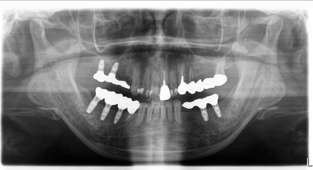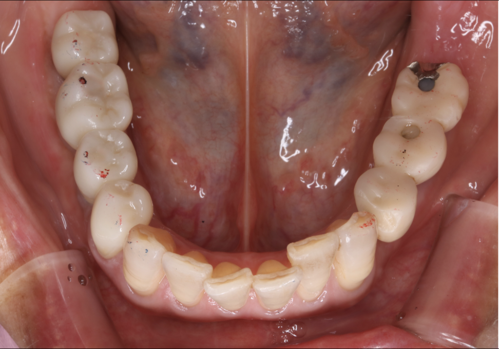 今回ご紹介する症例は、他の部位にはすでにインプラントが入っている一方で、右下には入れ歯が入っていた患者様の治療例です。